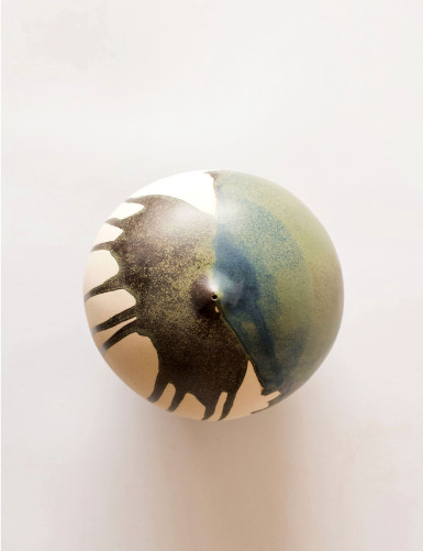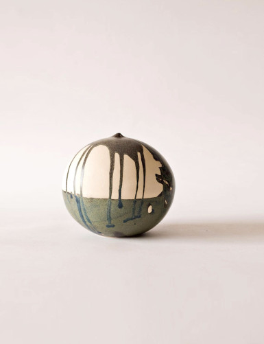 On of a Kind sculptural vase; in some pieces, fingerprints can be seen on the stoneware container, a Japanese technique that testifies to its handmade nature.